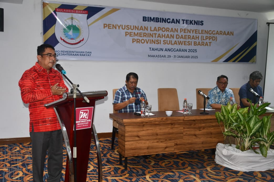 MAMUJU – (Quantumnews) – Pj Sekprov Sulbar, Amujib didampingi Karo Tapem Sulbar, membuka secara resmi Bimbingan Teknis Penyusunan Laporan Penyelenggaraan Pemerintahan Daerah ( LPDP) Provinsi Sulawesi Barat tahun anggaran 2025 di Hotel Maleo makassar, 29-31 Januari 2025.