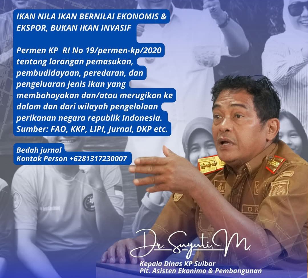 “Ikan nila, ikan bernilai ekonomis dan ekspor, bukan ikan invasif,” kata Suyuti Marzuki, Senin, 10 Maret 2025, dalam unggahan di media sosial Facebook DKP Sulbar.