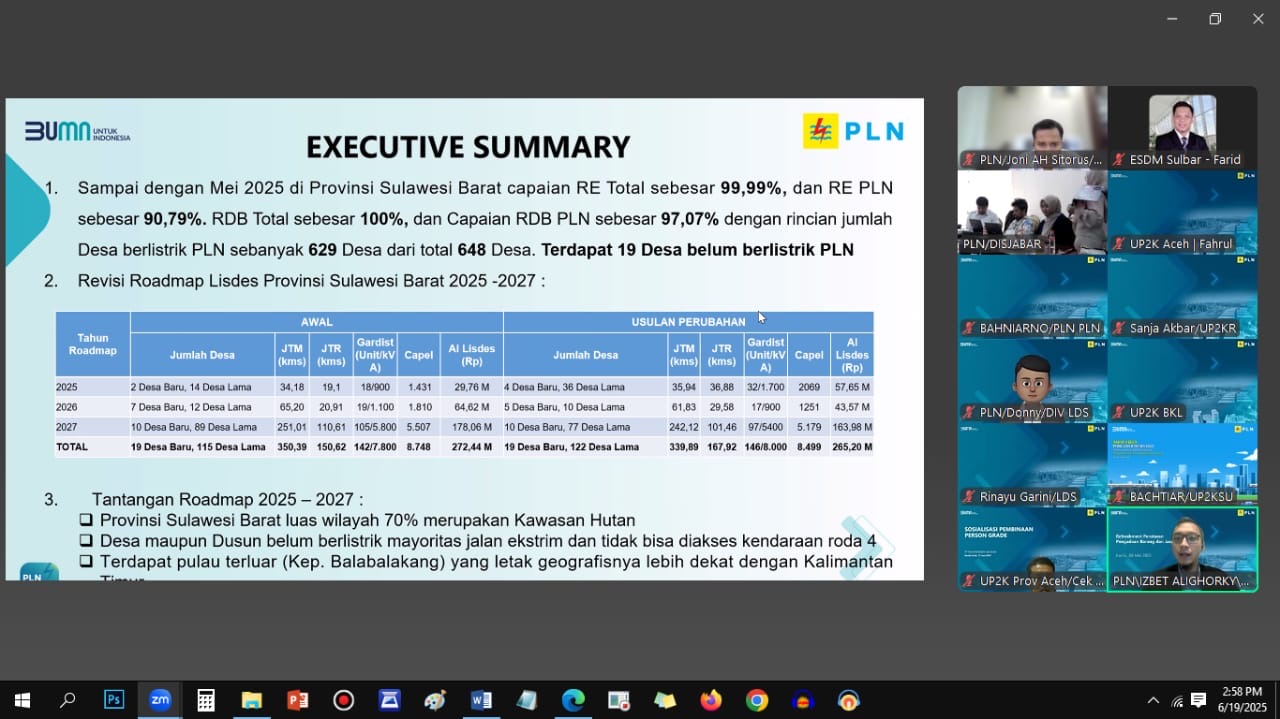 Sementara itu, Manager UP2K PT PLN Sulbar, Izbet Alighorky memaparkan bahwa hingga Mei 2025, Rasio Elektrifikasi telah mencapai 99,99% dan Rasio Desa Berlistrik (RDB) 100%. Namun, masih ada 19 desa belum dilistriki oleh PLN.