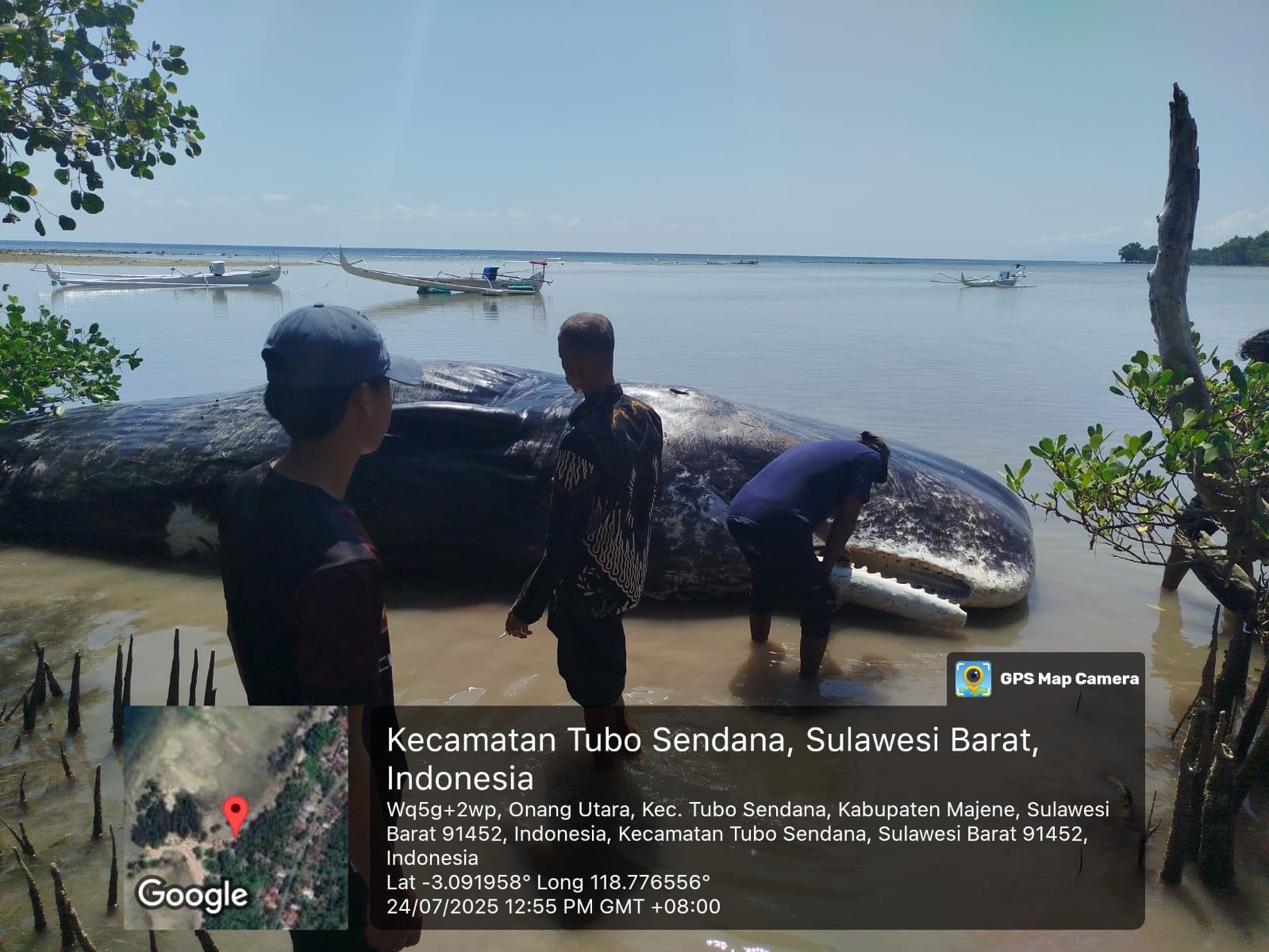 Majene, Quantumnews.id – Seekor paus sperma (Physeter macrocephalus) ditemukan terdampar di perairan Baturoro, Desa Tubo Selatan, Kecamatan Tubo Sendana, Kabupaten Majene, Sulawesi Barat, Kamis (24/7/2025).