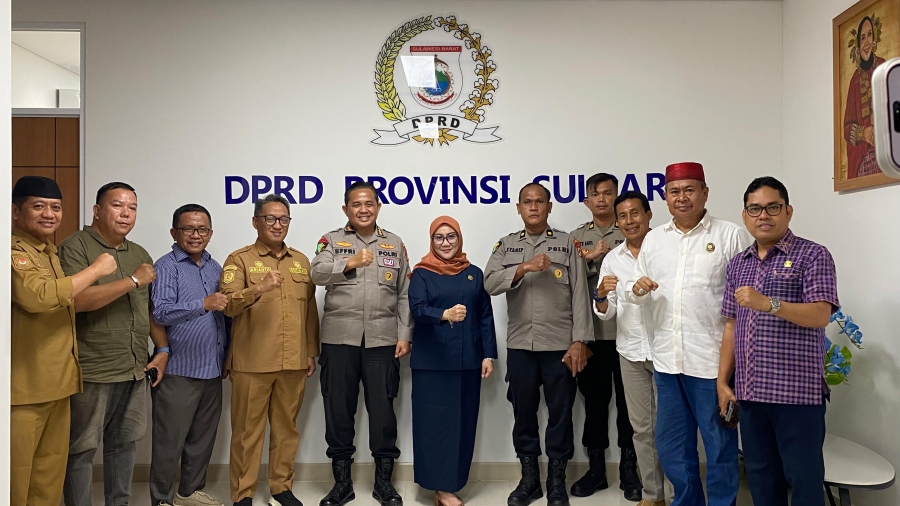 Mamuju, Quantumnews.id — Wakil Ketua DPRD Sulbar, St. Suraidah Suhardi, didampingi Ketua Komisi IV Abdul Rahim, Sekretaris DPRD Sulbar, serta Kabag Persidangan dan Kabag Umum & Keuangan, menerima kunjungan silaturahmi Kabiddokkes Polda Sulbar, Kombes Pol. Effri Susanto, Selasa (23/9/2025), di Ruang Banggar DPRD Sulbar.