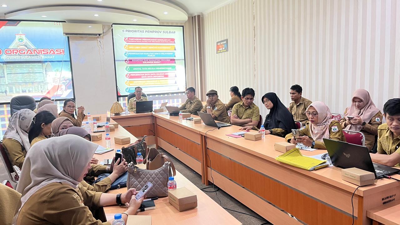 Kegiatan berlangsung di Ruang Rapat Biro Organisasi Setda Sulbar, dihadiri pejabat dan staf dari perangkat daerah yang menjadi lokus evaluasi, baik mandiri maupun mandatori Kementerian Pendayagunaan Aparatur Negara dan Reformasi Birokrasi (KemenPANRB).